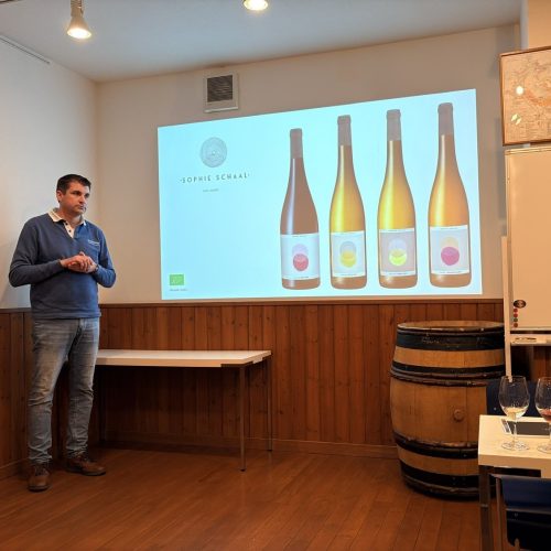仲間たちで作ったワインという意味でのネーミング。アロマティックだけどクリーン。アルザス品種なのでアルザスボトルに瓶詰。ボトル抜栓後、温度で品種の表現が変化する。キリっと冷やすとリースリング、温度が上がるとゲヴュルツ。、様々な表情があるので、様々なシーンで飲んでほしいという1本。和食にも合わせやすい。タイ料理などのアジアンフードとも合わせられる。