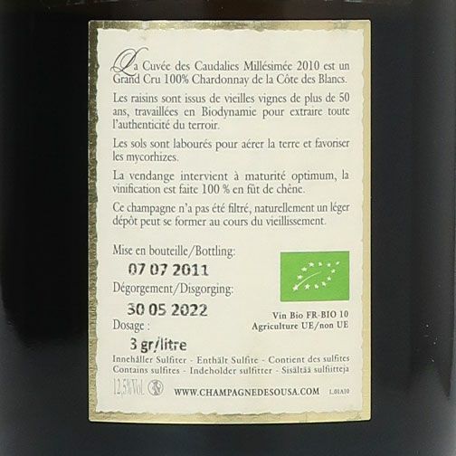 ド・スーザ・エ・フィス キュヴェ・デ・コダリー エクストラ・ブリュット ブラン・ド・ブラン グラン・クリュ 2010