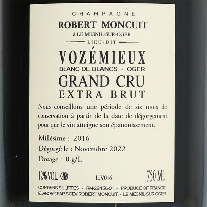 ロベール・モンキュイ ブラン・ド・ブラン ヴォゼミュー グラン・クリュ 2016
