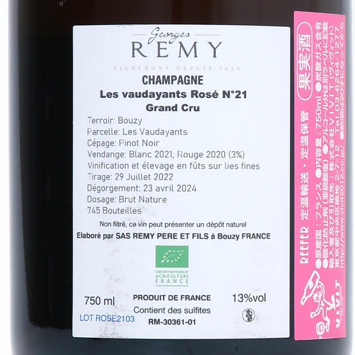 ヴェルズネイとコート・デ・ブランの完璧な融合 グ完成度の高い熟成を証明しているかのような黄金色の輝き。藁とハニーキャンディのクリーミーで成熟した香りが感じられ、シャンパンの円やかさと繊細さの印象付けます。また、微かにカシスとミントのノートも。口に含むと、豊潤で滑らか!かつリッチな味わいが広がります。