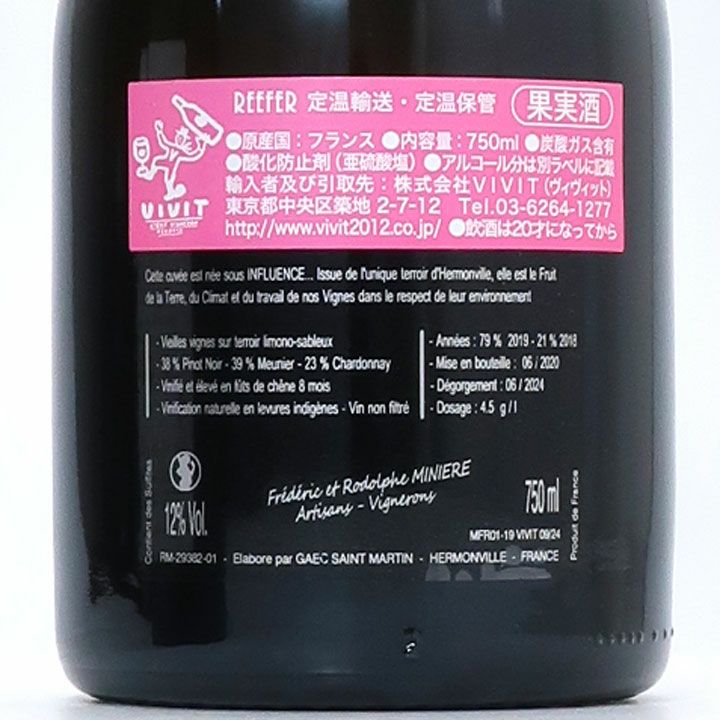 品種:ピノ・ノワール45%、シャルドネ35%、ムニエ20%