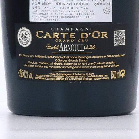 他の画像を見る ミッシェル・アルノー・エ・フィス グラン・クリュ ヴェルズネイ カルト・ドール 2015【マグナムボトル】 クール便でお届け可能 通常価格 ¥ 37,400 (税込) WG価格 ¥ 32,600 税込 (0) ミッシェル・アルノーのセレクション・キュヴェ ミラベルのような黄色の果実に、ほのかなカシスの香りが重なりグラスから漂います。カカオやスパイス、キルシュのニュアンスもあり複雑なアロマが特徴的です。緻密な酸とミネラルが優しい甘さのある果実味に綺麗に溶け込みエレガントな味わいを演出しています。 品種:ピノ・ノワール50%、シャルドネ50% 泡・辛口 カートに入れる お気に入りに登録する