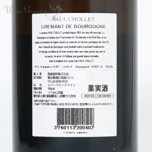 他の画像を見る 【19%オフ!】 ポール・ショレ クレマン・ド・ブルゴーニュ ブリュット NV(2026春セールNo.14) クール便でお届け可能 販売期間 2026/03/05 12:00 〜 2026/03/31 23:59 通常価格 ¥ 3,960 (税込) WG価格 ¥ 3,207 税込 (0) エレガントな仕上がりの本格派クレマン ピノ・ノワールの力強さと果実味に加えて、シャルドネの繊細さと優雅さ、アリゴテの清涼感が調和しています。熟した青リンゴの香りに、キメ細やかな泡立ちとミネラル感を伴うフレッシュな味わいです。 品種:ピノ・ノワール70%、シャルドネ+アリゴテ30% 泡・辛口 在庫切れ 詳細を見る お気に入りに登録する