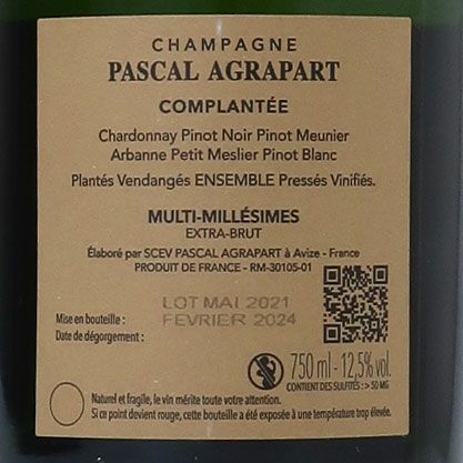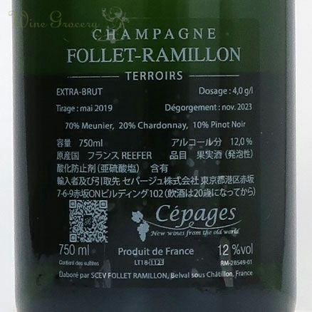 永続的リザーヴワインを贅沢に使用したブラン・ド・ブラン コート・デ・ブラン地区のブドウを使用。ドケの父が1970年代に植樹したコトー・デュ・ペルトワのシャルドネも含まれます。砂糖漬けにしたシトラスやリンゴ、清涼感あるニュアンス。清々しい酸と、チョークの風味と塩のほのかな塩味。うっすらと酸化的なニュアンスも感じられますが、うまみがしっかりと乗っており、若々しいシャルドネの魅力がたっぷり味わえます。