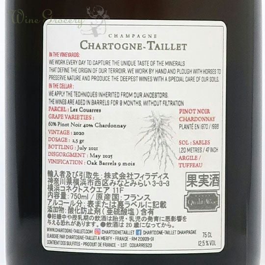 他の画像を見る シャルトーニュ・タイエ レ・クアール NV(2020) クール便でお届け可能 通常価格 ¥ 28,600 (税込) WG価格 ¥ 27,760 税込 (0) 密度・軽やかさ・エレガンスを兼ね備えたキュヴェ レ・クアールはメルフィの畑の中央にある単一畑。砂が混ざった粘土が豊富な土壌で、地表から80cm下にはチョークの層があります。すぐ近くのピノ・ノワールが栽培されているレ・ゾリゾーとは土壌が異なり、よりミネラル豊かな味わいとなります。密度・軽やかさ・エレガンスを兼ね備えています。 品種:ピノ・ノワール60%、シャルドネ40% 泡・辛口 カートに入れる お気に入りに登録する