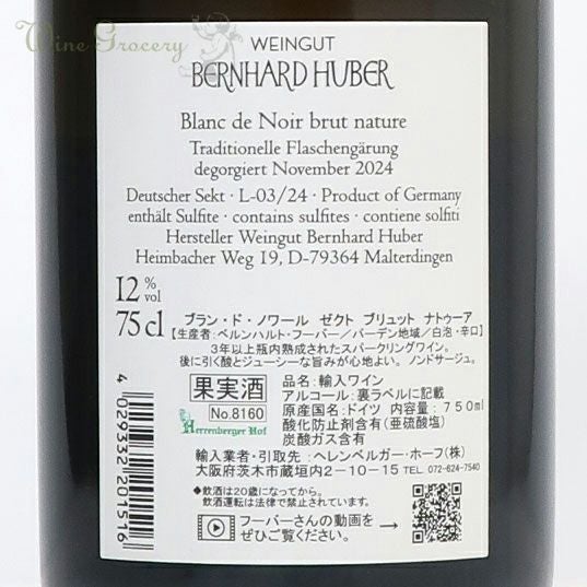 他の画像を見る ベルンハルト・フーバー ブラン・ド・ノワール ゼクト NV クール便でお届け可能 通常価格 ¥ 19,800 (税込) WG価格 ¥ 19,200 税込 (0) 樹齢70年の贅沢ブラン・ド・ノワール ゼクト! 2017年から導入したソレラシステムで造りあげたゼクトです。ベースになるのは2020年ヴィンテージで、1950年代のかなり古い古木のシュペートブルグンダーを使用しています。ゼロ・ドザージュで、ベースワインは大樽熟成、3年の瓶熟後にリリースしています。2020年は温暖でバランスの良いブドウが取れたヴィンテージ。丸みがあり、後に引く酸とジューシーな旨みが心地よい味わいです。 品種:ピノ・ノワール100% 泡・辛口 カートに入れる お気に入りに登録する